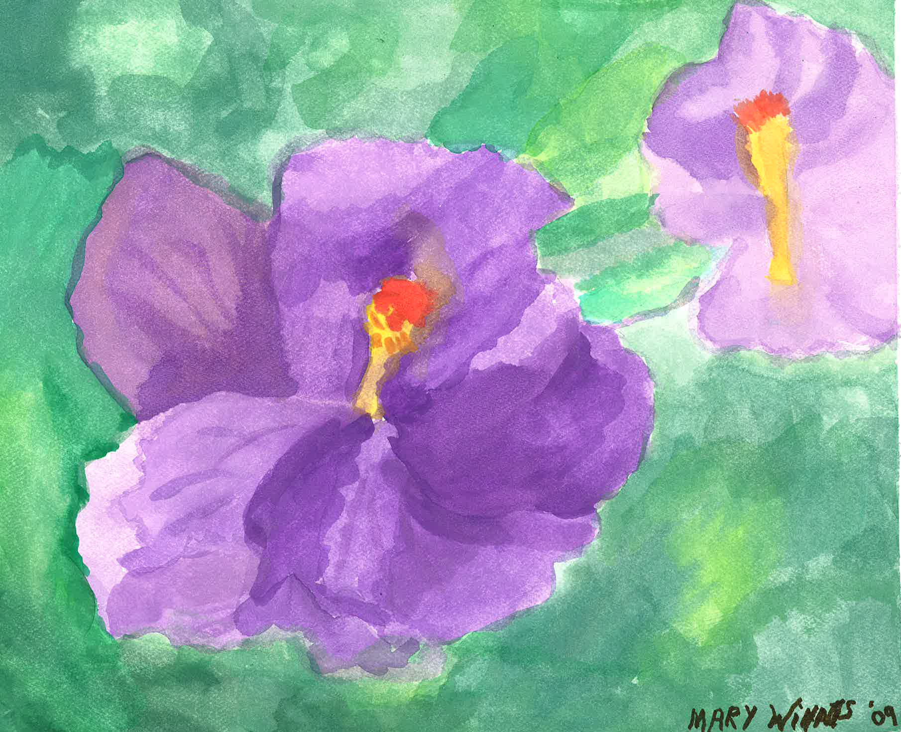 Today’s featured Memories in the Making artist is Mary W. Mary is an avid painter who grew up in the Scull Valley of Arizona. She worked as a medical secretary and had three lovely children. As well as relaxing with her warm cup of coffee in the morning, Mary also loves to read and go to church. Mary is an incredible artist and has blossomed in the painting class. These flowers reminded her of the flowers she used to see while on vacation in Hawaii.
