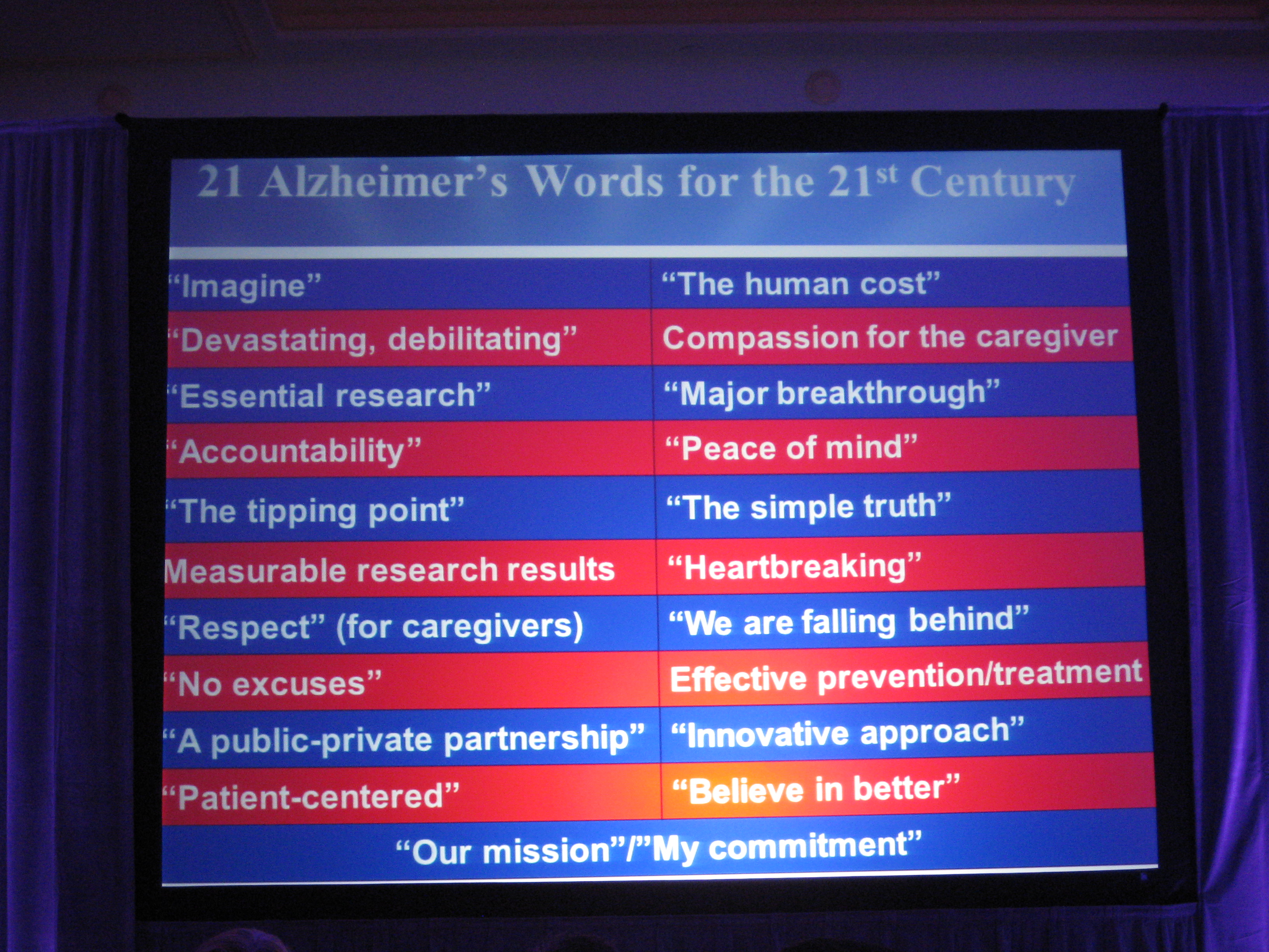 He then walked through what he calls 21 Alzheimer’s words for the 21st Century. These are a series of words and key phrases to use specifically during this event’s meetings to help illustrate the Alzheimer’s cause and really reach the heart of the staffers and legislators we will be meeting with.