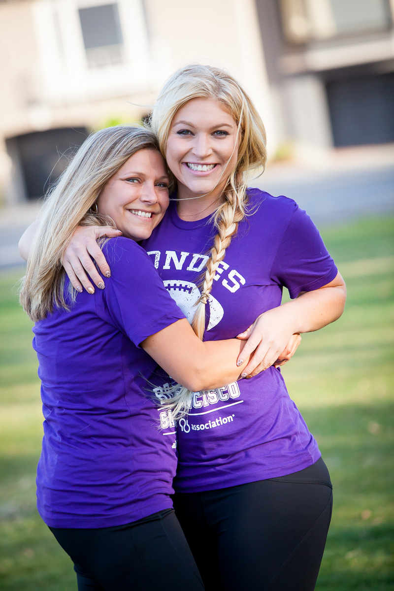Neither of us knew a single other person at the first ever Blondes vs. Brunettes SF (BvBSF) practice. We didn’t know the coaches. We certainly didn’t know what to expect. And, to be honest, neither of us were sure we’d be coming back the next week, and that was ok. It was certainly a shock to both of us self-identifying tomboys, that so many women just like us were out there to play football and support a great cause.