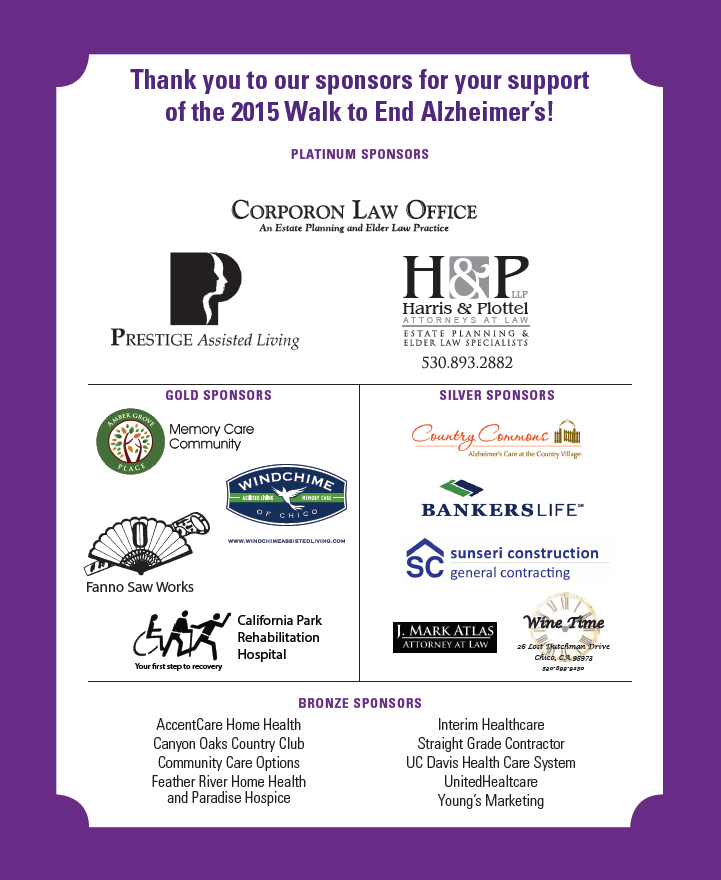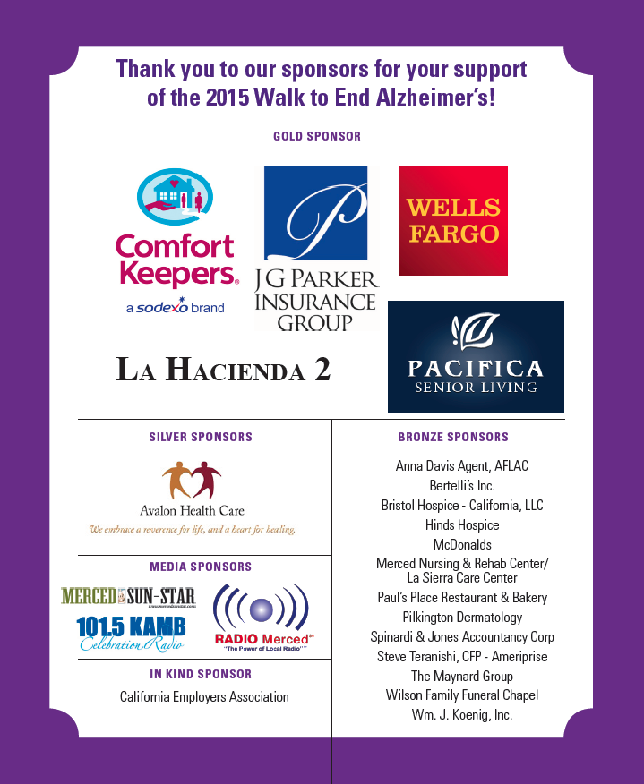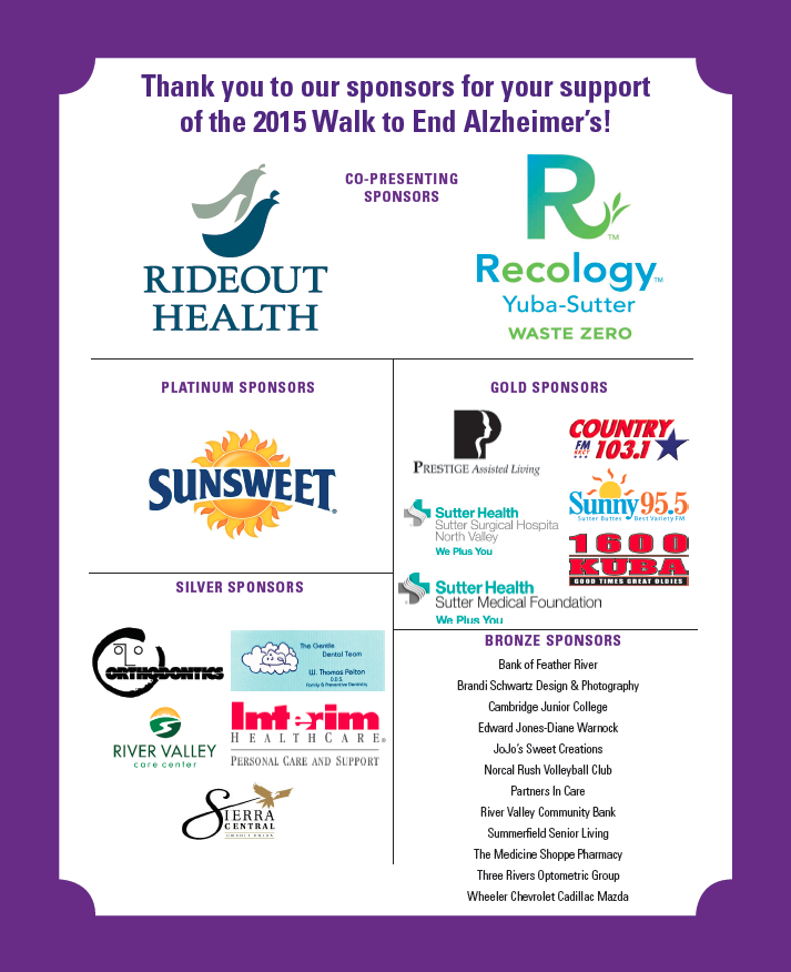 Thanks to our 2015 Walk to End Alzheimer’s Sponsors
