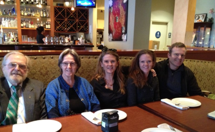 The O’Sheas at a family gathering before Jim passed away. From left to right: Jim, Mary, Deirdre, Katie, Brian.
