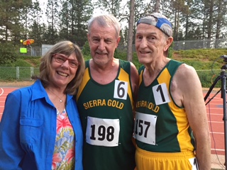In 2014, Geno and Cathy got connected with Sierra Gold Racing Team (formerly Trkac Racing Team) in Grass Valley. Geno started training with the running club. Cathy said that they embraced Geno. Individual team members would run beside Geno to make sure that he didn’t get lost. They would also run with him in races, such as the Fab 40s 5K (a benefit for the Alzheimer’s Association). Cathy says “the team just loves Geno.”