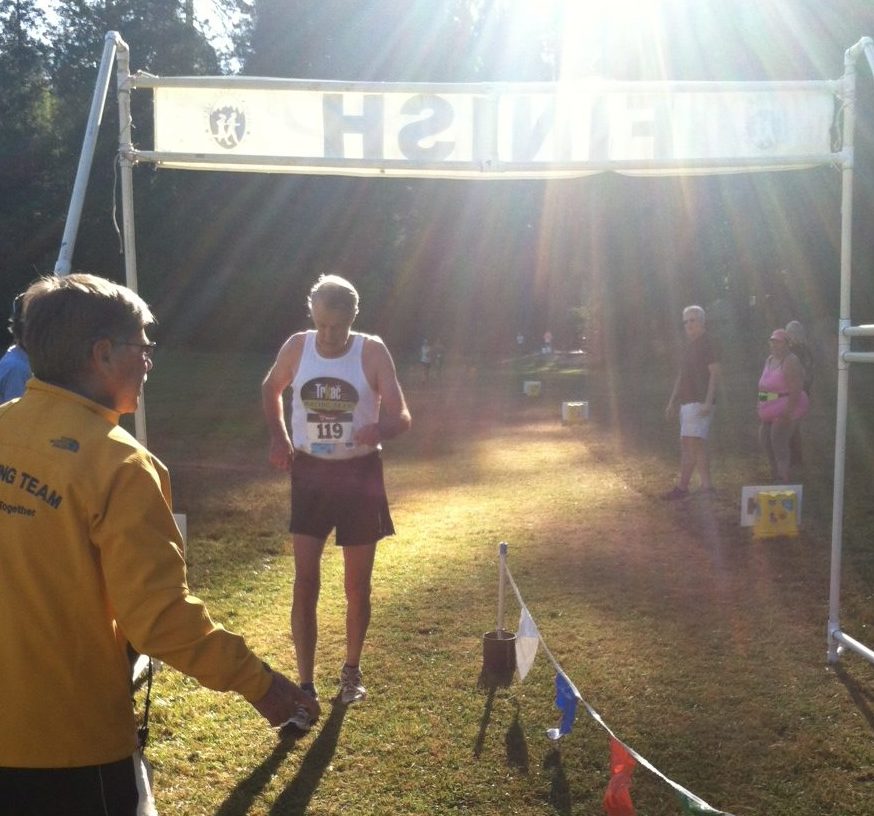 It has been a few years since Geno has been able to run alone. Besides running with the team, individual runners work out with Geno on other days. Cathy is not able to run anymore due to an injury, but she goes out with Geno on some of his runs, following behind on her bicycle. They have started choosing wider trails, as Geno has become less comfortable on narrow trails.