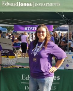 Last year on Walk day, Shari helped staff the Edward Jones booth. She enjoyed spending her morning with friends and family, raising funds and awareness.
