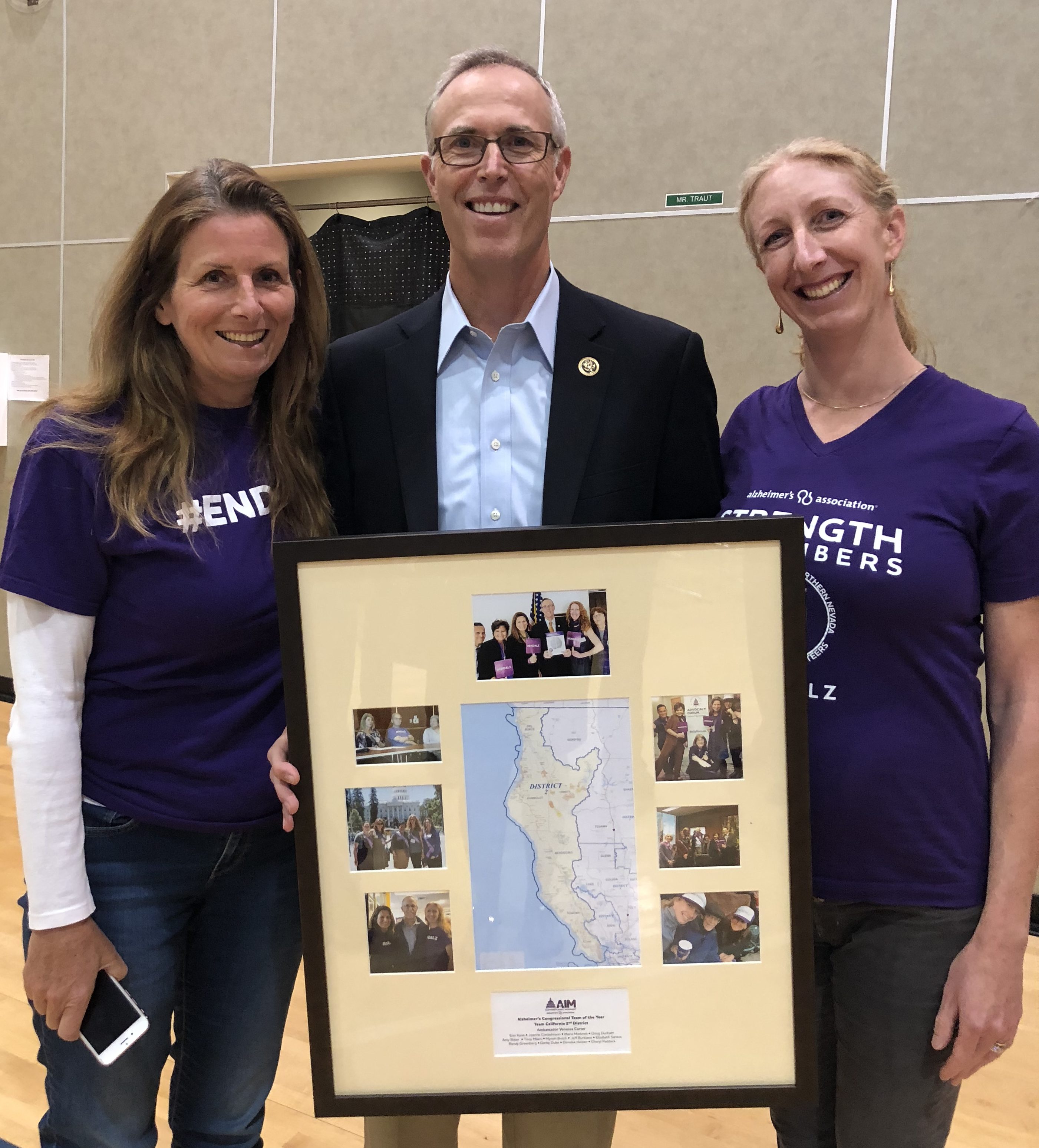 She has enjoyed sharing her story with Congressman Huffman and his staff. “Congressman Huffman has been very supportive of our group’s asks. He has co-sponsored both pieces of legislation (PCHETA, BOLD Alzheimer’s Act) and has supported the increases in federal research funding for Alzheimer’s.”