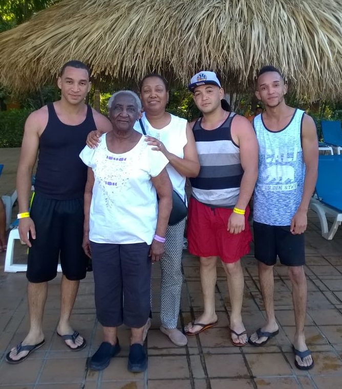 Sandra con su madre y sobrinos