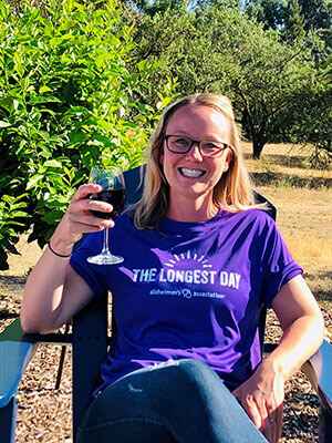 In 2020, during the pandemic, Mandy hosted a virtual wine event. She and her family shared video tips and tricks. On June 21, Mandy posted something on her social media sites every hour. Some of these posts were about wine, however most of the posts raised awareness about the disease and the work of Alzheimer’s Association.