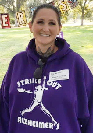 Our website has more information for those living with Alzheimer’s or another dementia or reach us 24/7 at 800.272.3900. Learn more about how you can become an Alzheimer’s advocate at alz.org/advocate. Bobbie Joe participates in the Merced Walk to End Alzheimer’s. You can join or support her team, Strike Out Alz.