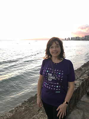 To honor her mother, every May Elizabeth does a 100-mile fitness challenge where she invites friends and family to participate. “Together we each bike, run, or walk 100 miles during the month, and raise funds to support the cause,” said Elizabeth. “For me, it’s a win-win! I get out and exercise AND I raise awareness and funds for The Longest Day. Once I’ve put my goal out there and my friends support me, I know I have to actually do it! It’s very motivating.”