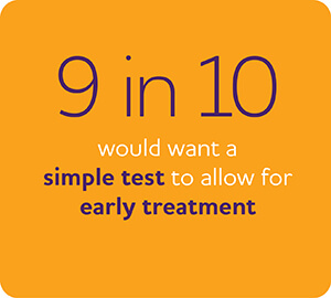 Additionally, more than 9 in 10 Americans would definitely or probably want a simple medical test – such as a blood biomarker test – if it was available, although very few are familiar with these tests. The number one reason for wanting a simple test is to allow for earlier treatment and care.